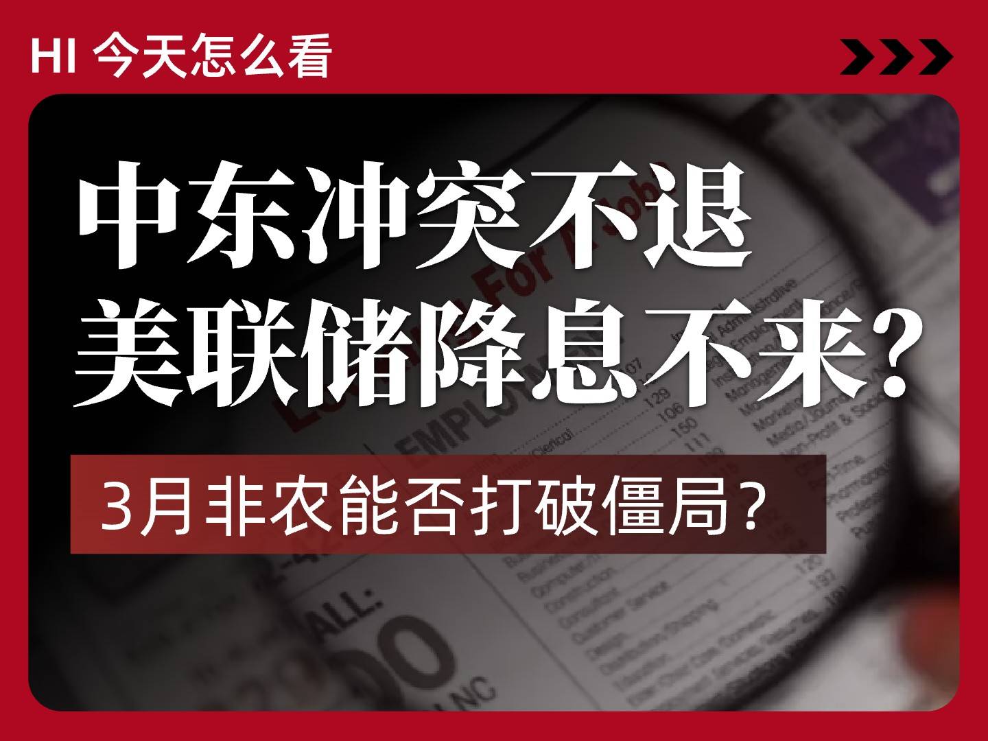 中东冲突不退,降息不来?3月非农能否打破僵局?丨Hi,今天怎么看?