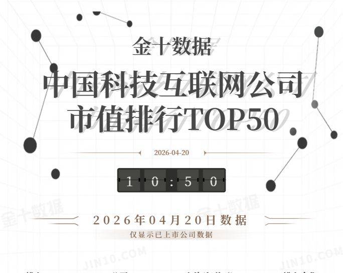 金十图示:2026年04月20日(周一)中国科技互联网公司市值排名TOP 50一览