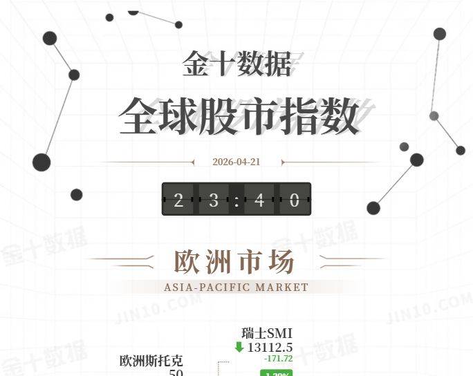 金十图示:2026年04月21日(周二)全球股市指数-欧洲市场