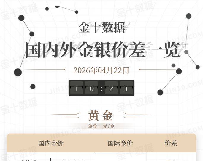 金十图示:2026年04月22日(周三)上海金早盘价为1046.07元/克,较国际金价(1043.67元/克),高2.4元/克