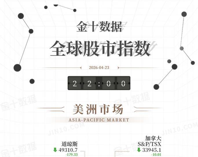 金十图示:2026年04月23日(周四)全球股市指数-美洲市场(盘初)