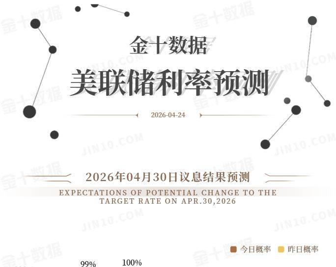 金十数据4月24日讯,据CME“美联储观察”:美联储4月加息25个基点的概率为1%,维持利率不变的概率为99%。美联储到6月累计降息25个基点的概率为2.6%,维持利率不变的概率为96.4%,累计加息25个基点的概率为1%。