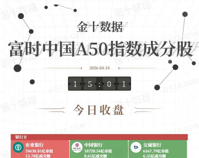 金十图示:2026年04月24日(周五)富时中国A50指数成分股今日收盘行情一览:银行板块午后维持分化走势,工业金属板块部分个股回升