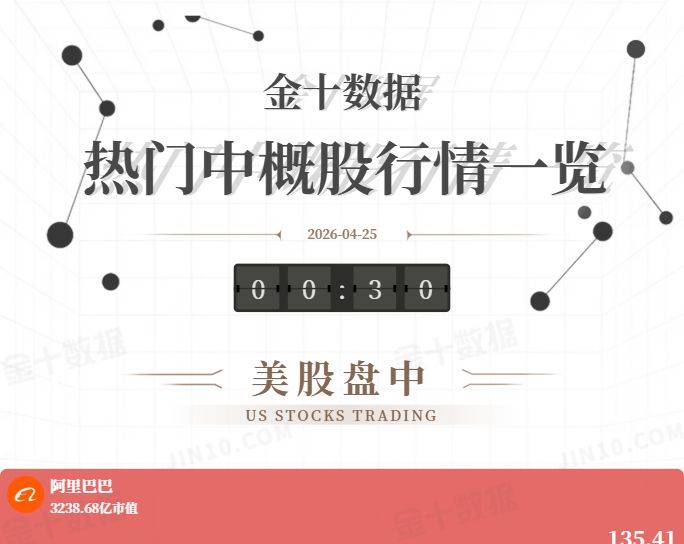 金十图示:2026年04月24日(周五)热门中概股行情一览(美股盘中)