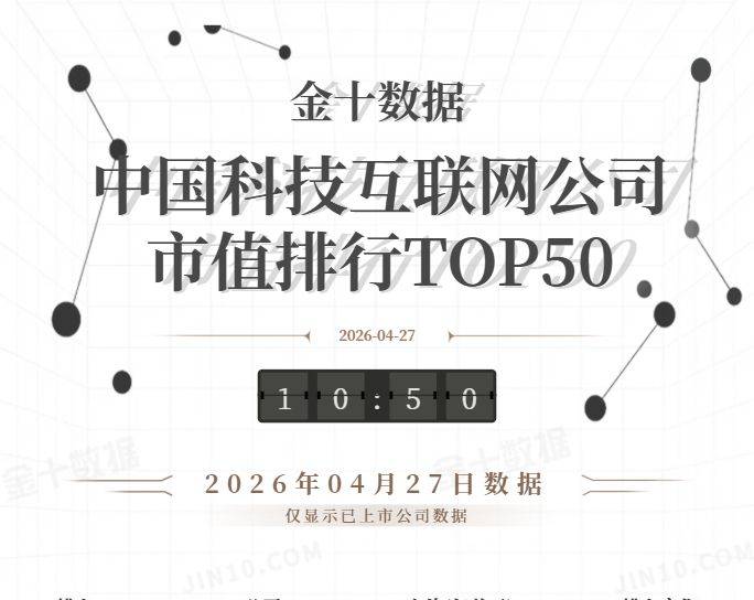 金十图示:2026年04月27日(周一)中国科技互联网公司市值排名TOP 50一览