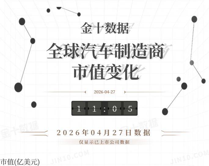 金十图示:2026年04月27日(周一)全球汽车制造商市值变化