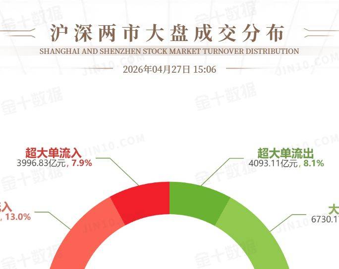 股市资金流向图:今日沪深两市主力资金净流出234.98亿元,占比0.91%;大单资金净流出138.71亿元,占比0.54%;小单资金净流入246.92亿元,占比0.95%。