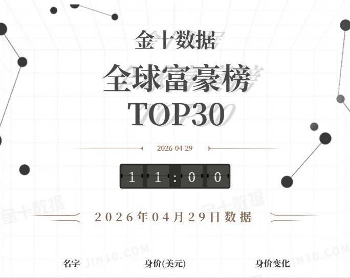 金十图示:2026年04月29日(周三)全球富豪榜